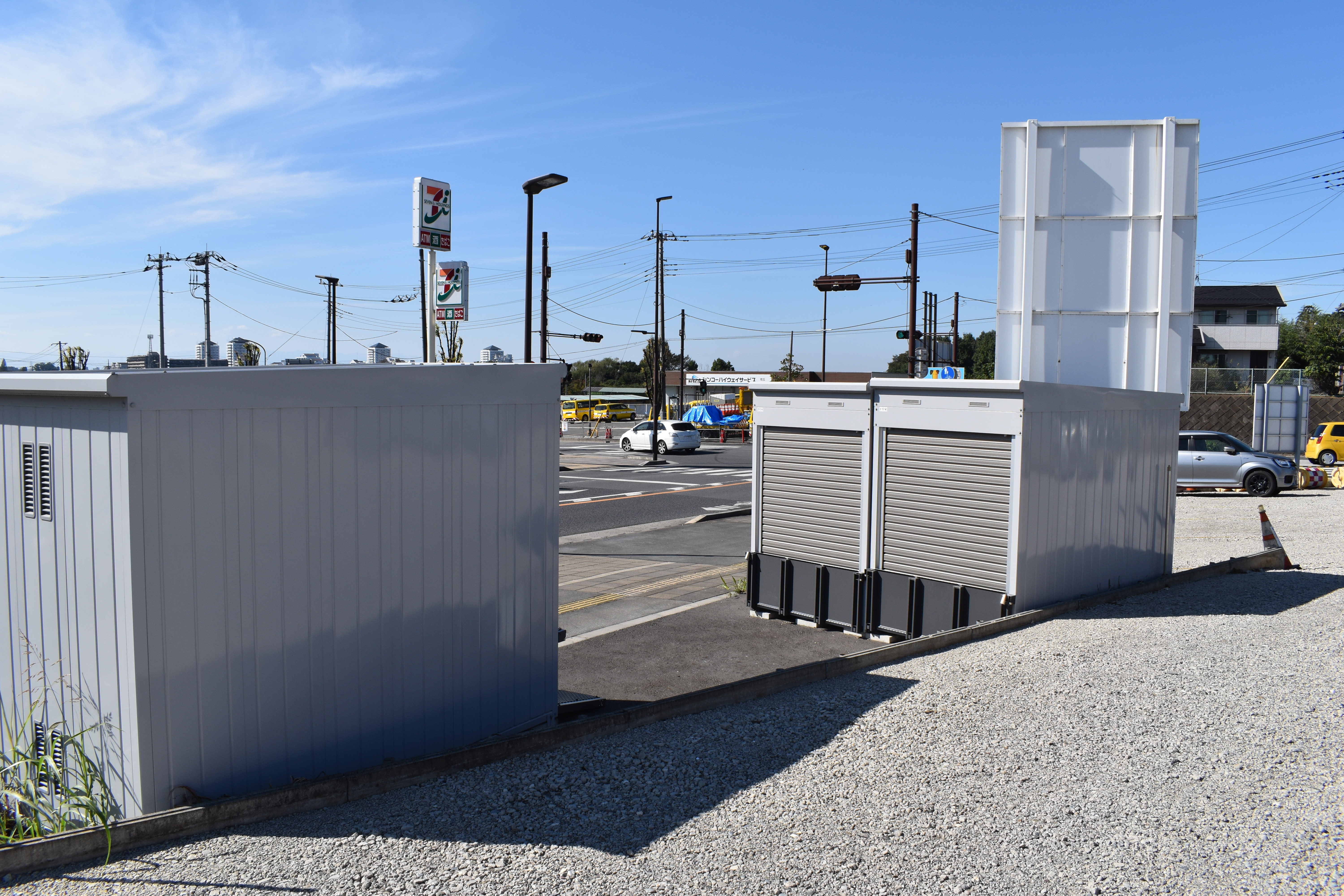 三角形の狭小地で幹線道路沿い。接道から切り下げもあり車両の出入は可能だが地型と土地面積が小さくバイク駐車場にて有効活用を行った。幹線道路沿いの為、看板用地としても効果が見込め併設で看板用地としての利用を行った。