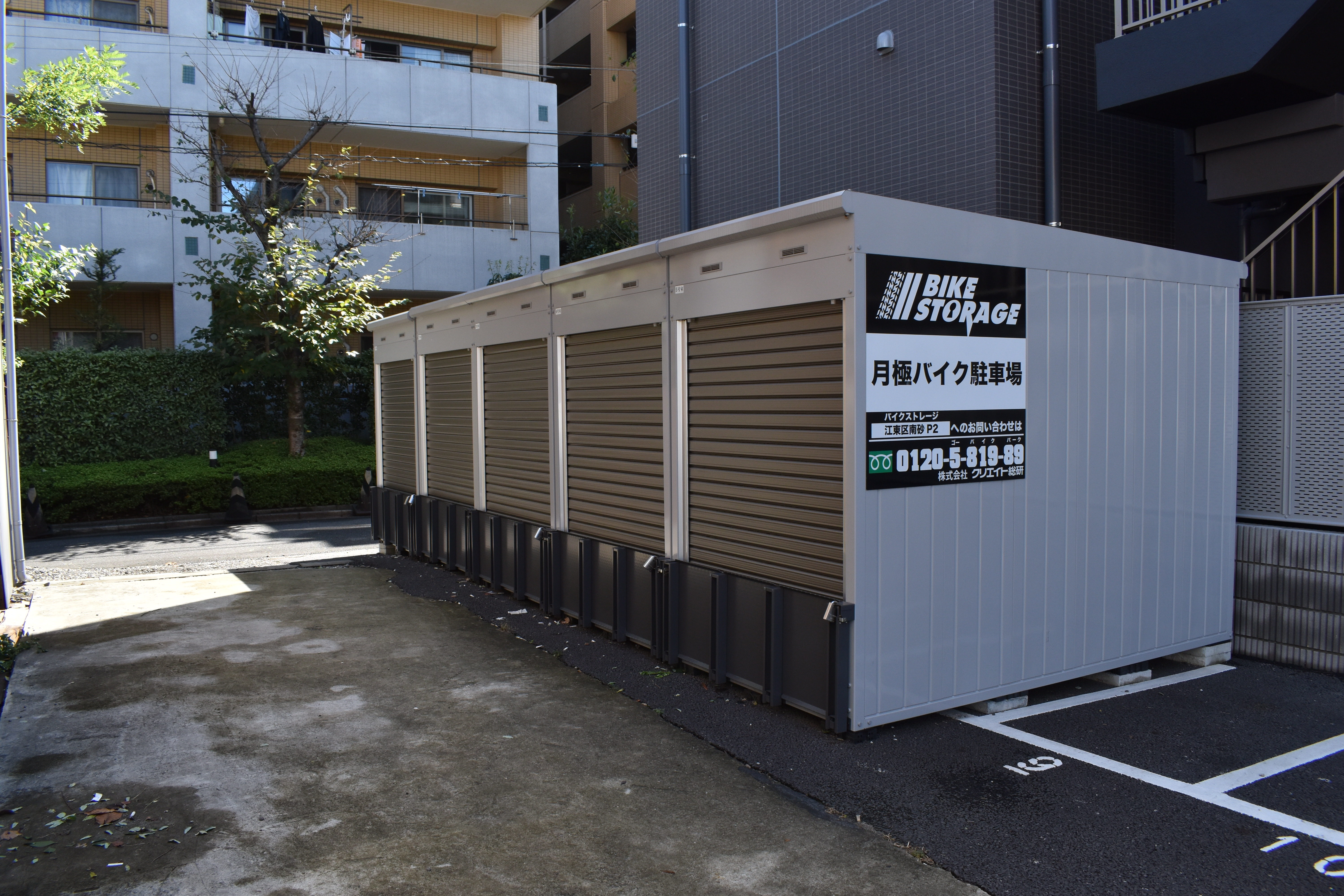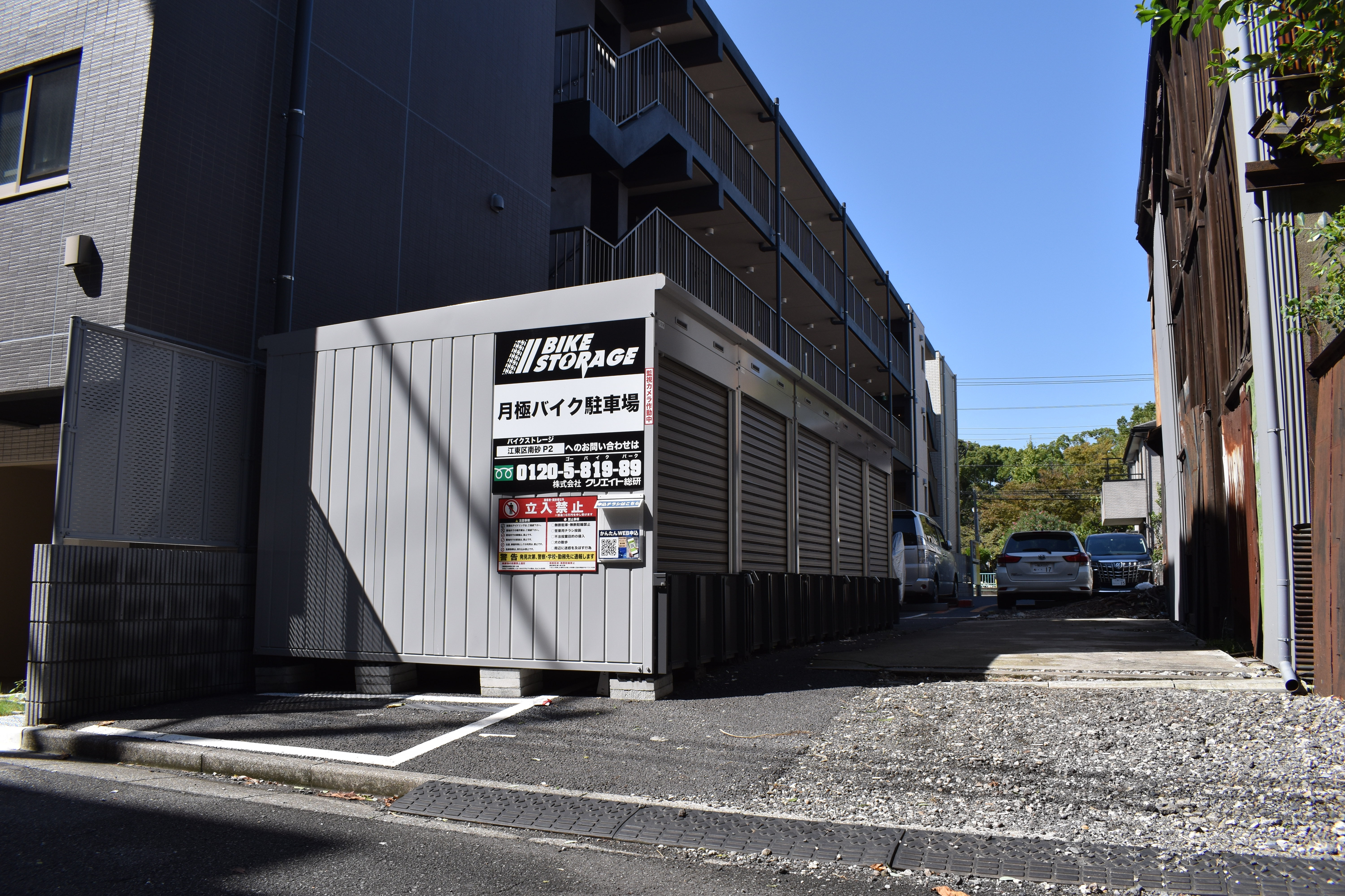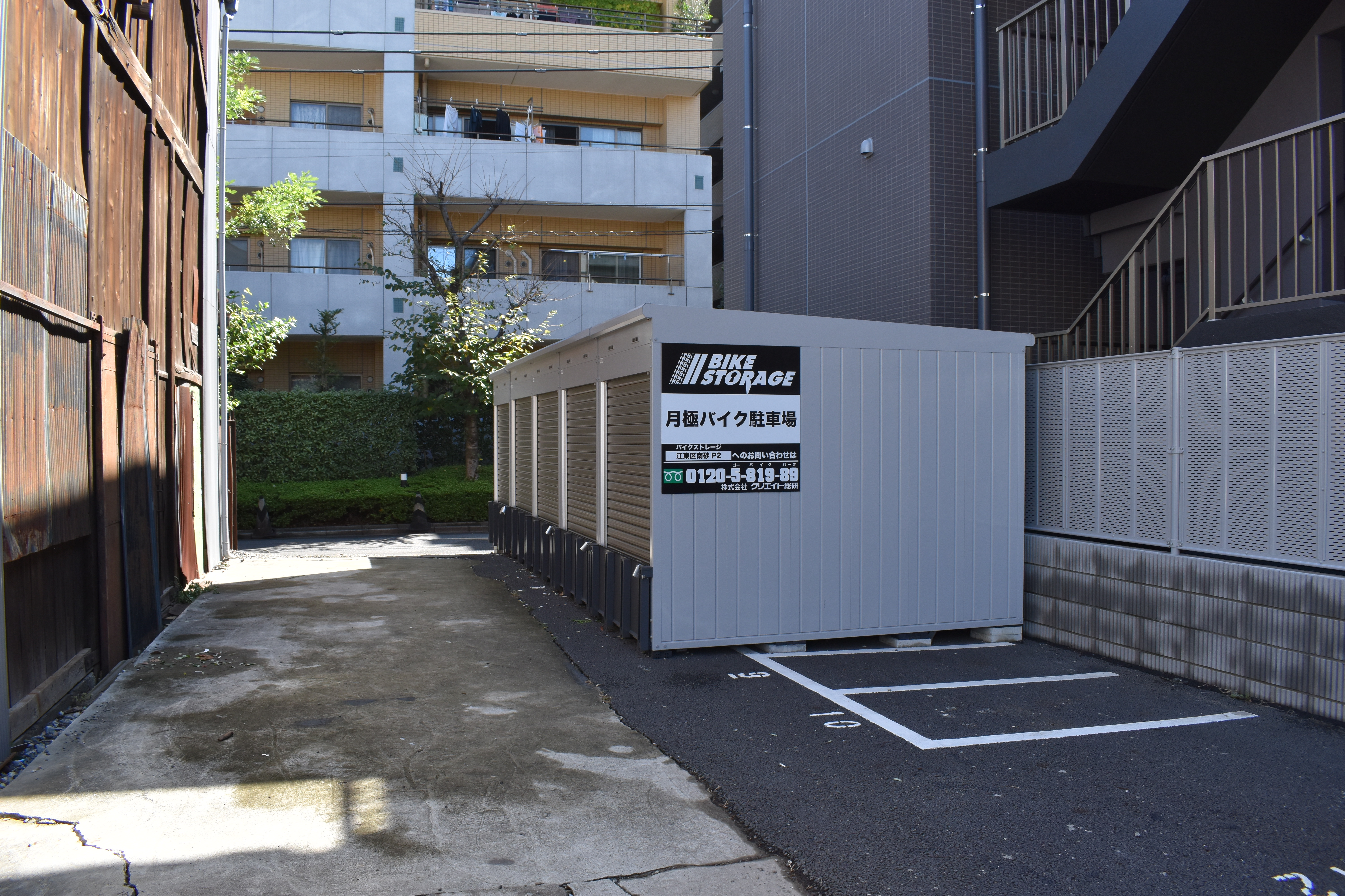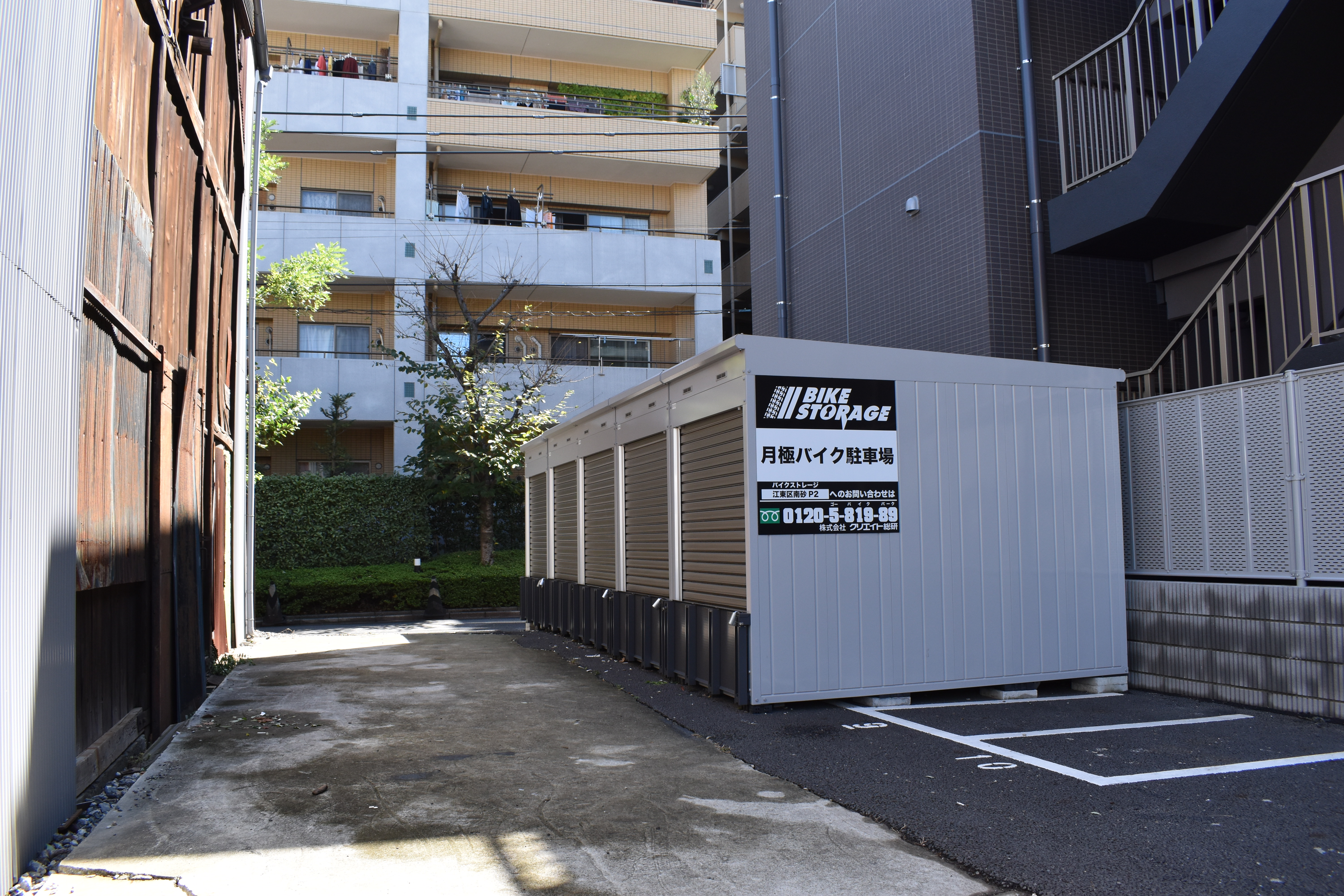 倉庫として利用している敷地一部を解体しバイク駐車場を運営。さらにバイク駐車場の一部をバイクガレージ式駐車場に変更を行った。既存倉庫利用の際、解体したスペースが四輪駐車場には狭くバイク駐車場利用する事により有効活用が行えた。